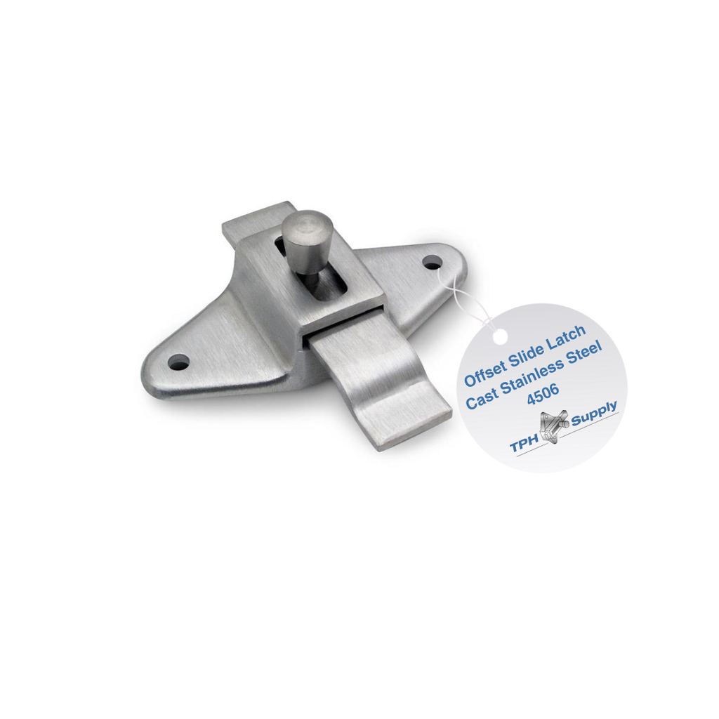 Cast Stainless Steel, Satin Finish, Surface Mounted Slide Latch, Offset Bar - 4506